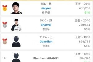 韩服排行榜更新:TES打野naiyou以2041分登顶韩服! jrs低调看 2026-01-02 20:38:55 电竞体育1月2报道 根据排位统计小程序显示,韩服前十排行榜更新,TES打野选手naiyou登顶。 排行 更新 上一篇: 韩媒:BRION战队将在LCK杯开始更名为韩进BRION 下一篇: T1分享Faker获奖感言:今天真是一个意义非凡的日子