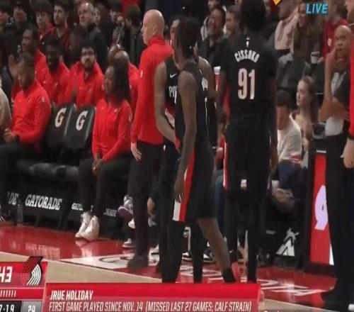 开拓者后卫霍勒迪连续伤停27场后复出替补登场。