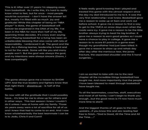 昨天深夜的消息,猛龙官宣裁掉保罗,随后没多久,保罗就在社交媒体上发布长文,正式宣布退役,结束自己21年的传奇NBA生涯。
